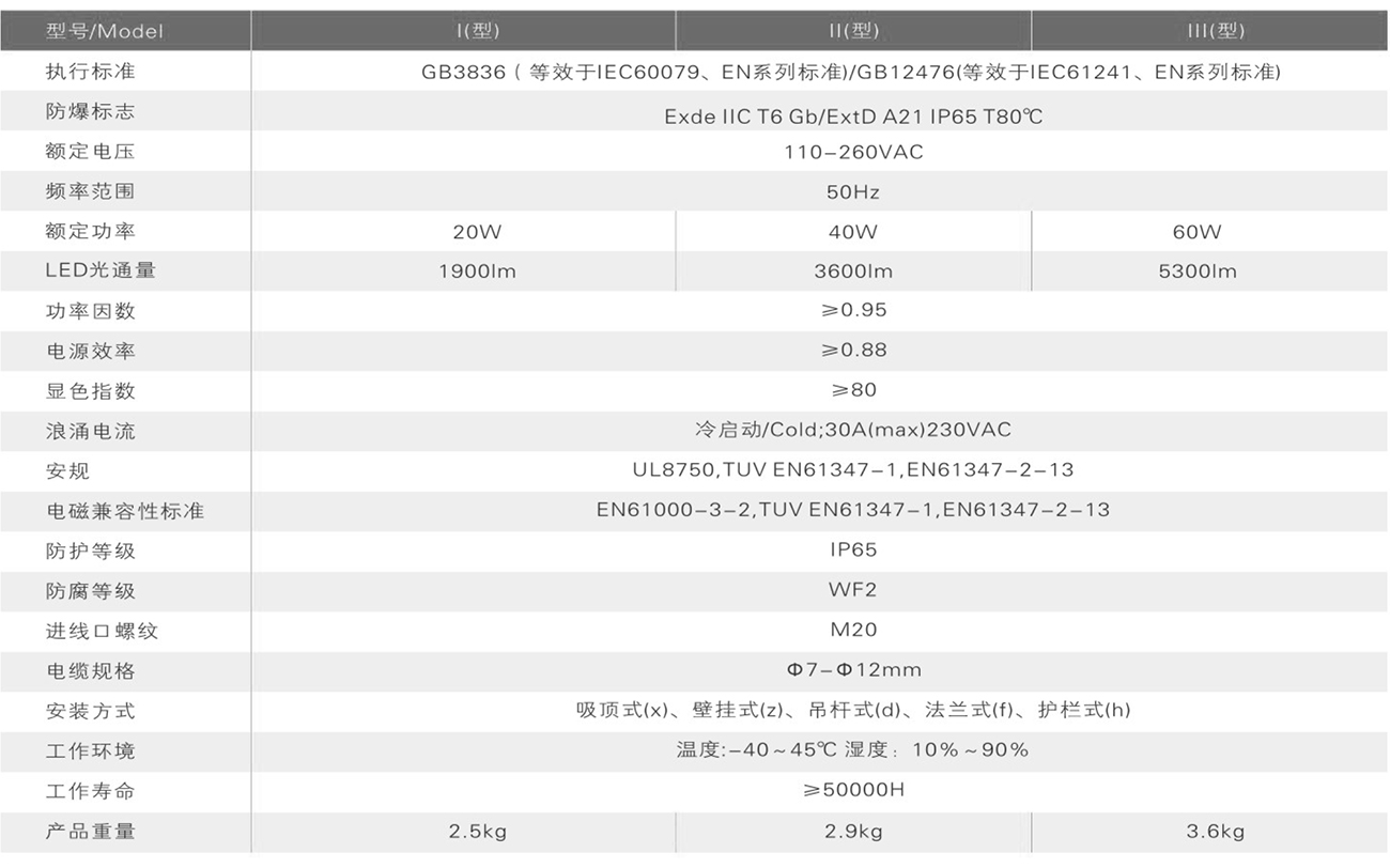 ◎ 適用于ⅡA、ⅡB、ⅡC級爆炸性氣體環境;